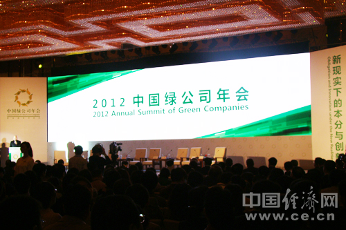 “2012年中国绿公司年会”于2012年4月21日-23日在中国·武汉召开。本届年会的主题是“新现实下的本分与创新”。 图为“2012年中国绿公司年会”现场。段丹峰 摄
