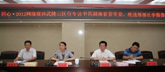 中国经济网讯 (记者 段丹峰)“参与武陵山区扶贫开发建设,是统一战线服务科学发展的重要平台,是统一战线加强自身建设的重要载体,是统一战线探索社会扶贫方式的重要实践。” ——中共湖南省委常委、统战部部长李微微在“同心?2012网络媒体武陵山区行”启动仪式上的讲话,拉开了本次活动的序幕。由中央统战部门户网主办、人民网等多家知名网站参与的此次活动,将于6月24日至7月2日,深入湖南武陵山区,对统一战线加快推进扶贫开发、促进武陵山区发展进行实地采访报道。