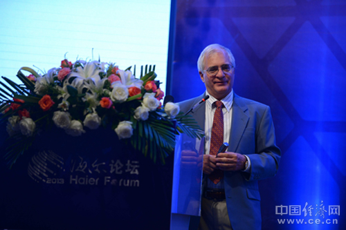 由中国企业管理研究会主办的“2013海尔商业模式创新全球论坛”于2013年7月28日在山东青岛举行。图为麻省理工大学斯隆管理学院教授 迈克尔·A·库斯玛诺发表主题演讲。