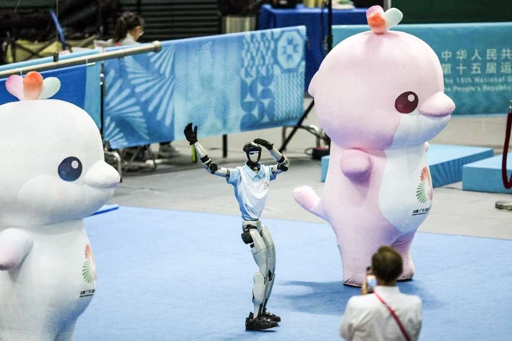 11月9日,机器人在第十五届全国运动会开幕式现场表演。