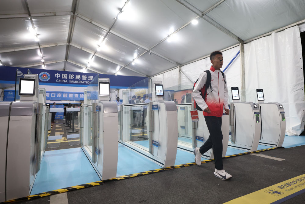 11月15日,全运会历史上首个跨境马拉松赛事开赛前,参赛选手在深圳湾口岸前置查验区完成查验手续。本次赛事通过智慧管理体系,实现了无感通关。