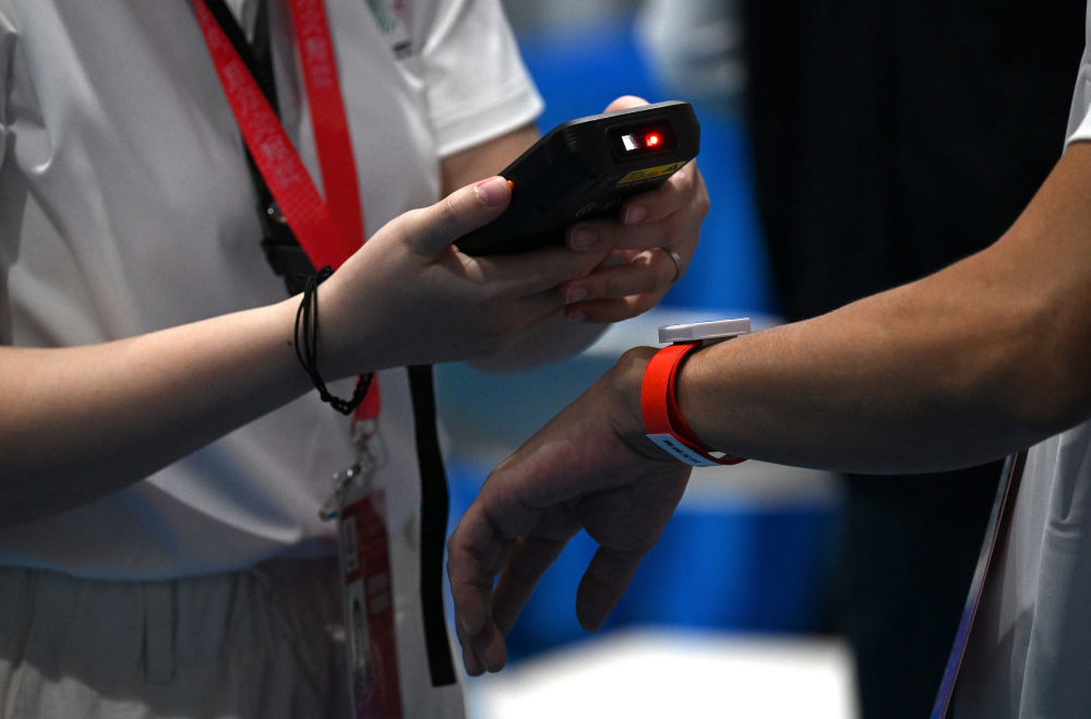 11月8日,全运会历史上首次举办的跨境公路自行车男子个人赛决赛开赛,这是当日拍摄的通关手环。