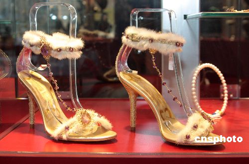 黄金女鞋。中新社发 吴芒子 摄