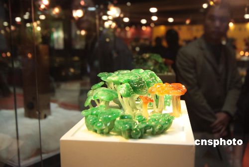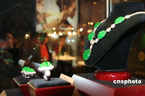 名为“绝代风华”的一组翡翠珠宝,估价超过七千六百万元人民币,是国内某知名玉石店的“镇店之宝”。中新社发 魏晞 摄