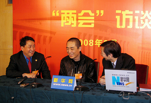 全国政协委员张艺谋、姜昆作客新华网人民大会堂全国两会报道间。新华网黄硕摄
