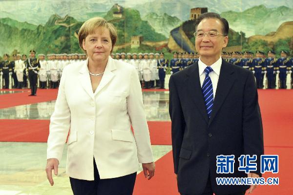 7月16日,中国国务院总理温家宝在北京人民大会堂举行仪式,欢迎德国总理默克尔访华。新华社记者李学仁 摄