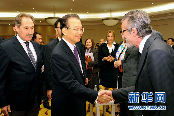 10月9日,正在土耳其进行正式访问的中国国务院总理温家宝在伊斯坦布尔同土耳其文化界知名人士进行座谈。新华社记者 饶爱民 摄