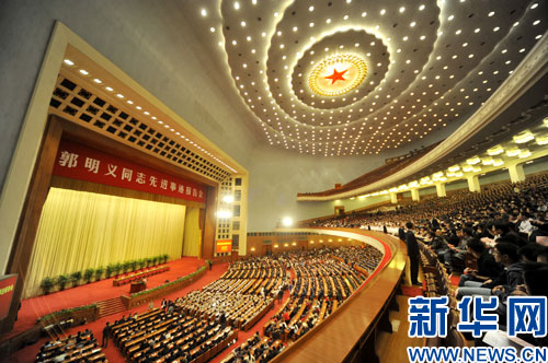 2010年10月11日9时30分,郭明义同志先进事迹报告会在北京人民大会堂大礼堂举行。图为报告会现场。新华网 车周勇摄