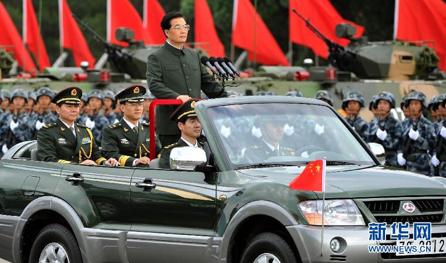 6月29日,中共中央总书记、国家主席、中央军委主席胡锦涛在香港石岗军营检阅驻港部队。 新华社记者陈晓伟摄