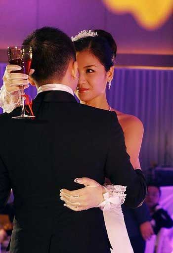 前天早上10时整,数百只粉色气球在北京王府饭店门前同时放飞,在豪华名车的护送下,新娘刘涛和新郎坐着劳斯莱斯缓缓抵达,新娘雍容地牵着父亲徐徐步上铺满鲜花的楼梯,望着在楼上深情等待她的新郎,脸上挂着满足的甜笑。