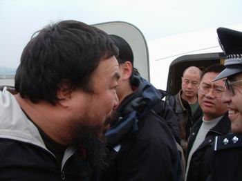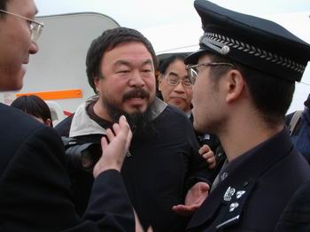昨日下午4:45,中国国际航空公司CA4454航班降落到重庆江北机场,中国著名艺术家艾未未提着简单的行李,随着乘客缓缓走出机舱。当他刚刚走过机舱门口,听到一位空姐在背后轻轻说了一声:“就是他!”只见一位穿警察制服的人当即挡住艾未未,说:“你刚才在机上与空姐发生摩擦,请你跟我到警察局去一趟!”艾未未一时有点摸不着头脑,等他醒悟过来是怎么一回事时,怒不可遏,与同行一起找国航讨说法,因此在飞机上滞留两个多小时。