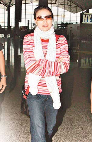郭晶晶旋风式到港宣传,也不忘抽空与绯闻男友霍启刚多次会面。昨日(11月17日)她准备离开酒店往机场,并使出一招调虎离山计,让四名保安人员架起人墙围行李上车,她却登上另一部车离去。机场上她架上黑色太阳镜、围巾,全程没精打采,记者与她告别时她只牵强一笑。而日前她接受有线访问时,被问到是否在蜜运中,她只顾甜笑却不回答:“这一个问题,不回答。”
