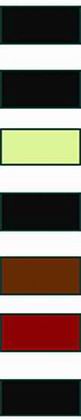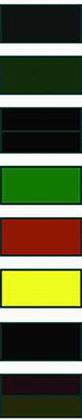 以海军蓝、深灰、深咖啡色、墨绿、深紫红为主的近黑色为代表,配以鲜艳的红色、绿光蓝、橙色和嫩黄色。