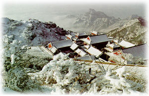 西神门与天街相连,东神门与通玉皇顶的盘道相接,两门形式相同,均石砌拱形门洞,高3.4米,宽3.25米,进深5.4米。上筑阁楼各3间,面阔8.8米,进深3.5米,通高4.9米,二柱六檩六架梁,重梁起架,卷棚歇山顶,施墨线小点金彩绘。