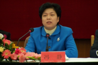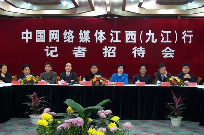 九江市副市长冯静在记者招待会上介绍九江市情