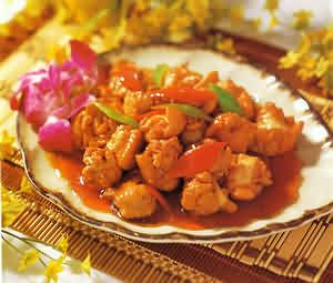 原料:鸡翅中节200克、青、红椒各1只,姜15克。 调料:花生油20克、盐8克、味精8克、白糖3克、豆瓣酱20克、胡椒粉3克、湿生粉适量。 制作: 1、鸡翅中节去净骨,青、红椒切片,姜切粒,去骨的鸡翅用少许盐、味精腌约30分钟待用。 2、烧锅下油,放入生姜、青、红椒、鸡翅中节、豆瓣酱煸炒至八成熟。 3、调入剩下的盐、味精、白糖炒至入味,用湿生粉勾芡,淋入麻油出锅入碟即成。