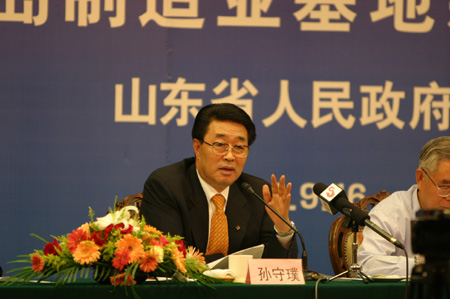 9月16日下午,山东省人民政府举办胶东半岛制造业基地新闻发布会。副省长孙守璞向各网站介绍了山东经济发展和胶东半岛制造业基地建设的情况,并回答了记者的提问。