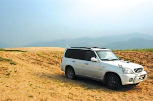 出驿站后返回康庄午餐,然后在下午挺进沙漠。天漠公园的娱乐设施比较齐全,但收费也比较高,除了每辆进入沙地的私家车要交纳100元的门票外,车里的每个人还要单交30元。公园里有滑沙(30元/人)、烧烤(商家提供鱼、虾以及主料等半成品,由客人自己来烧制)、射箭、骑马等娱乐项目,没开越野车的游客还可以选择租一辆沙滩越野车临时过过瘾(越野车30元/圈,开1500米,可坐两人)。