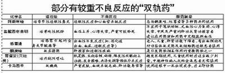 我国从2000年起实施《处方药与非处方药分类管理办法》,计划2005年底基本完成处方药与非处方药(OTC)分类。目前国内OTC药只占1/10,再除去小部分的严格型处方药,剩下大部分都是“双轨药”,能自由买卖。在身份未明前,有些“双轨药”已“暴露”出严重不良反应(见附表)。